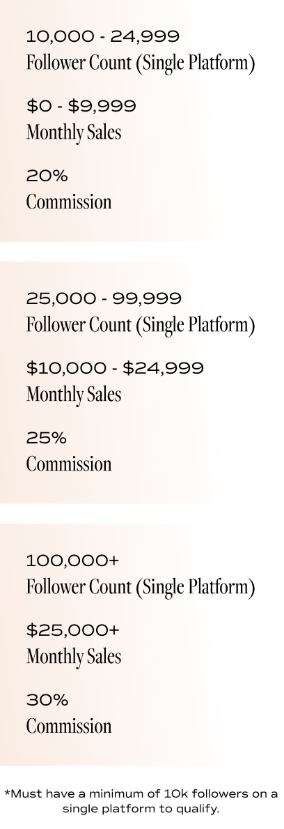 Share your unique link with customers and earn up to 30% commission on all retail purchases.