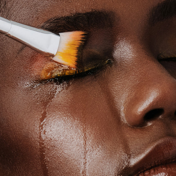 Saturate Clean Swoop Brush with Breakdown, gently working into the lash line and around the eye area to dissolve makeup. Wet brush with water and run over lashes to rinse. Pat dry.